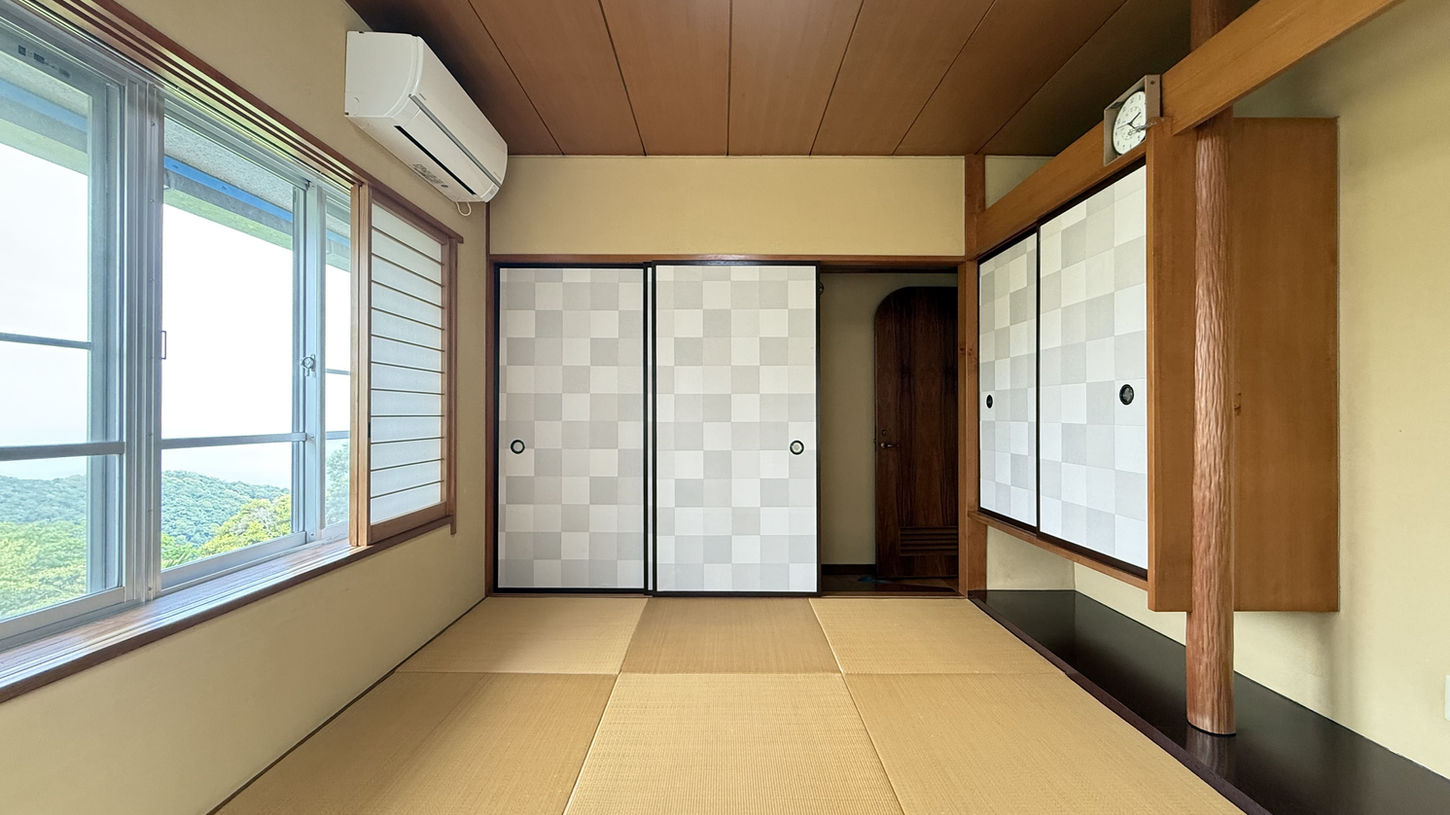 テラスの先に広がる景色は、木々の緑と海。